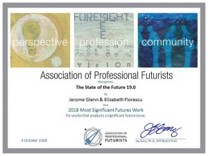 - Βραβείο “2018 Most Significant Futures Work”, από την Association of Professional Futurists.